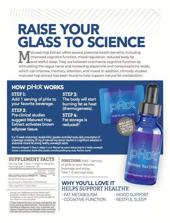 The revolutionary, patent-pending pHix is the first of its kind in the world, a fat/weight loss industry disrupter. It is an affordable, tasteless, all-natural, plant-based, vegan, organic, non-GMO, drug free, stimulant free, non-alcoholic, no adverse side effects — safe for all ages product designed to help you slim down and have fun doing it!