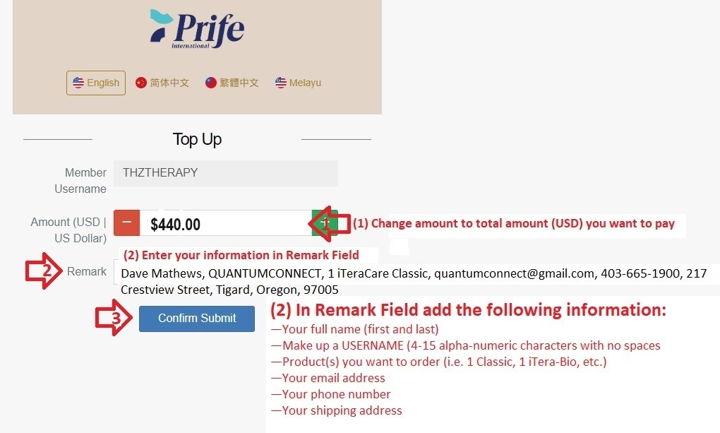 (Example: iTeraCare Classic 2.2 in AUS @ $440.00 USD)