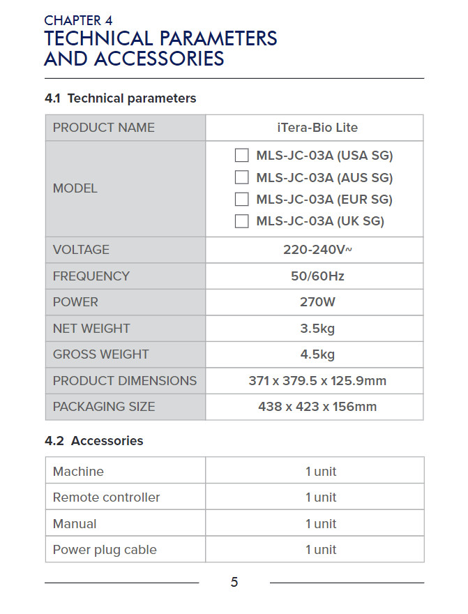 The iTeraCare device is certified household electrical equipment. It has been certified as “safe to use.” It emits no harmful radiation, and it has labels allowing for its distribution internationally.